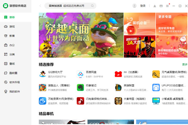 联想软件商店绿色免安装版是一款非常好用的电脑软件管理工具。这款软件可以帮助用户轻松管理电脑中已安装的软件,你可以对这些软件执行卸载、升级等操作,还提供了海量的电脑精品软件,用户可以在这里找到你需要的一些工具,该版本绿色免安装修改,使用起来更加方便。