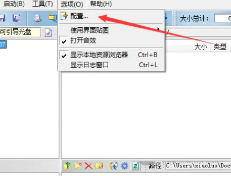 点击了选项 菜单之后,弹出了下拉菜单选中为配置选项