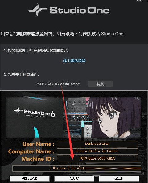 运行StudioOne_Keygen.exe,将激活码复制到machine id中,然后点击genrate生成激活码