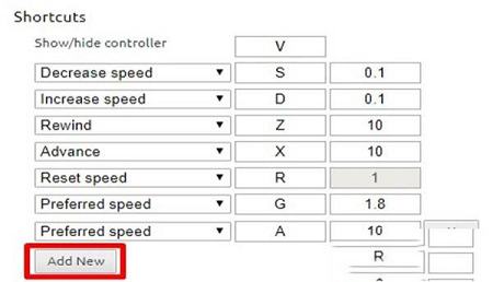 4、你可以在扩展程序设置页面中自定义和重新指定默认快捷键,也可以添加其他快捷键以匹配您的首选项,例如,为多个不同的首选速度快捷键分配不同的值,这样就可以在最常用的速度之间快速切换,要添加新快捷方式,请打开扩展程序设置,然后单击Add New