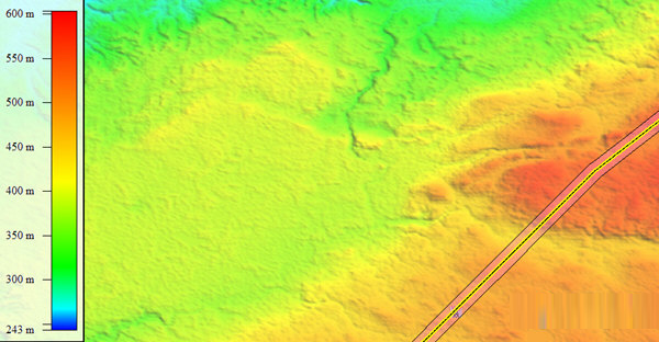 在 Global Mapper 中可视化 3D 数据的另一种方法是路径剖面工具。在分析工具栏中,路径剖面是数据沿线的横截面可视化。在 Global Mapper v24 中,渲染路径剖面线指定距离内遇到的 3D 点要素的能力增强了以下场景的可视化展示:垂直控制点偏移、沿飞行路径的无人机收集的图像以及地上或地下资产点。