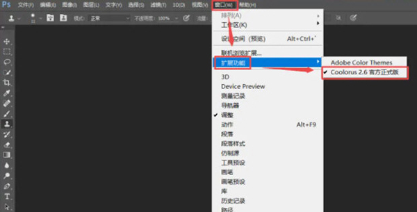 9、依次点击菜单栏中的“窗口”——“扩展功能”——“Coolorus 2.6 官方正式版”