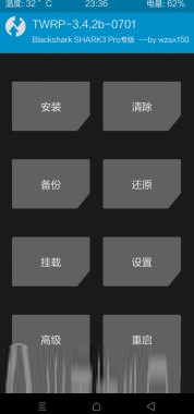 1、解锁后解压对应版本的TWRP.7z文件,然后点击recovery-twrp一件刷入工具.bat,按照提示刷入第三方Recovery,刷入成功后手机会自动进入第三方Recovery界面;