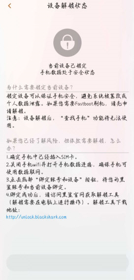 小米手机可以在小米社区里下载解锁工具,但是黑鲨手机虽然和小米手机一样,也有设备解锁状态和绑定账号和设备这个选项,但是这个解锁工具的下载地址根本打不来,直接被屏蔽了。所以,解锁BL只能用第三方的工具了。