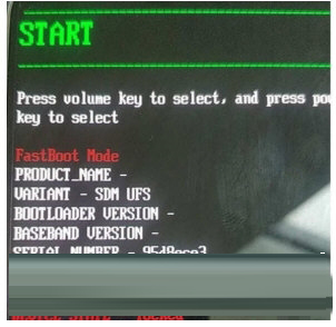 9、开机后再次关机,按住开机键和音量减键,当手机振动时,立刻松开开机键,但音量减键要按住,直到将手机重启到bootloader模式下再松开;