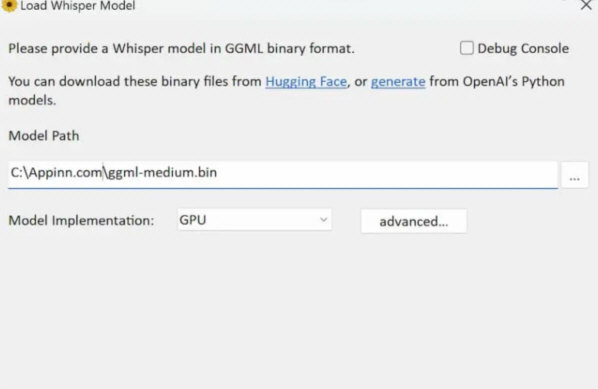 4、软件提供模型下载,将语音模型添加到Whispe就可以识别声音