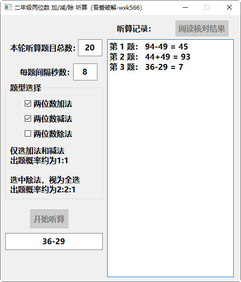 二年级两位数加减除听算软件 V1.0 绿色免费版