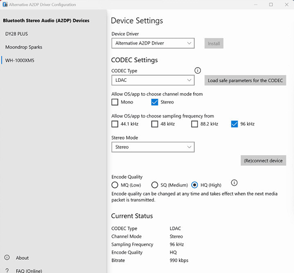 Alternative A2dp Driver是一款PC添加额外蓝牙音频协议软件,这个软件可以让Windows的蓝牙播放索尼耳机的ldac协议,官网表示目前仅支持LDAC和aptX(由于专利/许可原因,不包括其他变体,包括LL和Adaptive)还有AAC,所以其他的协议暂时是用不了了。