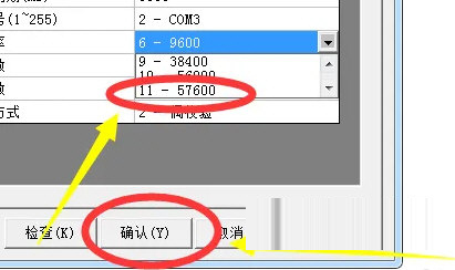 然后在通讯波特率下拉菜单中选择需要更改的波特率并点击确定,通讯波特率就设置完成了。