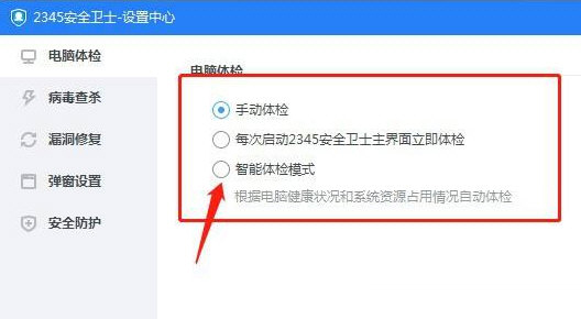 如果每次开启2345安全卫士都自动进行杀毒,那么你可以进入设置中心里,在电脑体检一栏中设置【手动体检】即可。