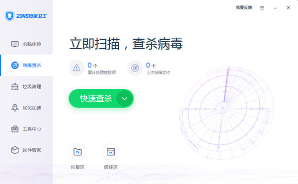 2345安全卫士是新一代的电脑防护软件,它集电脑体检、木马查杀、垃圾清理、修复系统漏洞、系统加速、软件管理等功能为一体,五重环绕式系统防护,云端精准查杀。病毒、木马、捆绑、广告...一网打尽,非常的简单实用,给你的电脑提供一层强力的保护罩。