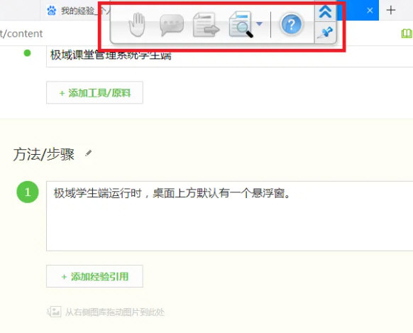 极域学生端运行时,桌面上方默认有一个悬浮窗,它列出了极域学生端的一些功能。