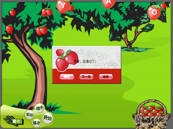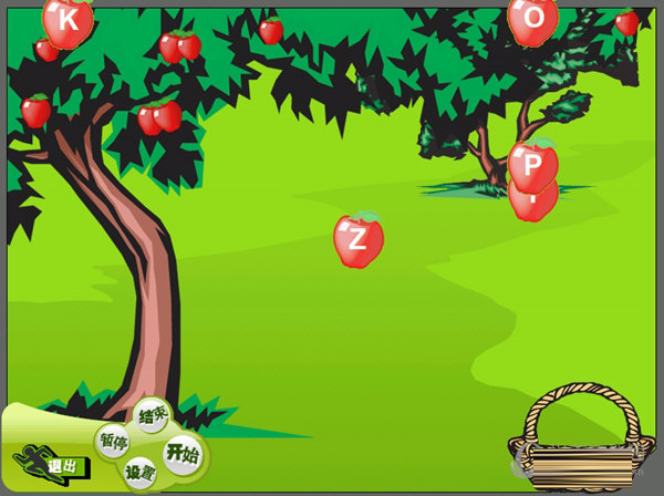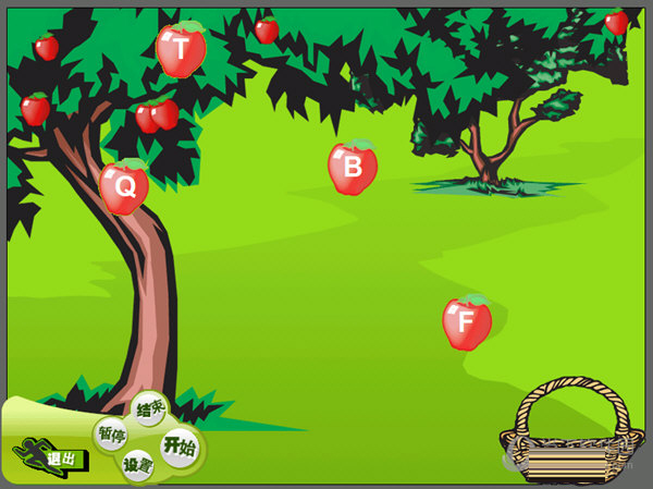 由于这个游戏是测试你对键盘字母位置的掌握技巧,所以请在游戏开始之前将输入法设置为英文状态。游戏开始后打对应的下落苹果上的字母即可拿去苹果,下方的篮子显示你当前的进度。