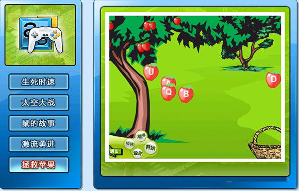 金山打字游戏拯救苹果是金山打字通中经典的打字游戏,也是一代人的经典童年回忆。这个版本出自于金山打字通2008的打字游戏。相比于老版的页面,新版拯救苹果画面更生动,同时也沿用了原版的Apple Apple I Love You背景音乐,熟悉的感觉一下就回来了。在游戏中你作为苹果园的主人,看着苹果树上的苹果成熟后一颗颗往下掉时是不是想要做点什么呢,赶快拿篮子去接住吧,游戏的规则很简单,下落的苹果上有字母,敲击键盘上对应的字母方可接住苹果。这个游戏的主要目的就是测试你对键盘字母按键布局的掌握,让你熟悉键盘点位、提高英文录入速度。很适合打字新手游玩使用,也可以作为儿童的打字启蒙游戏,寓教于乐。