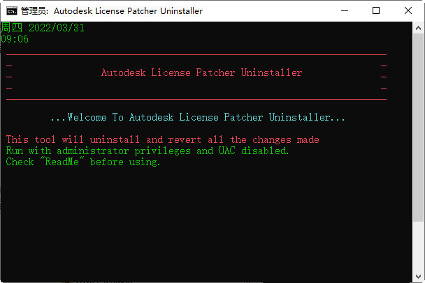 2、如果要卸载并还原工具所做的所有更改,请启动“Autodesk License Patcher”卸载程序.exe".