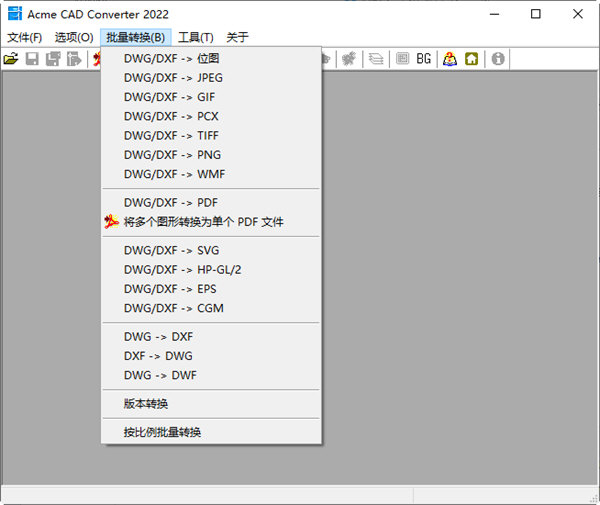 Acme CAD Converter 2022是一款是非常专业的CAD图形文件转换和查看软件,DWG格式是CAD制图数据交换中的事实标准,所以该程序支持用户将DWG转换为PDF,WMF,JPEG,TIFF,EPS,SVG,CGM等等多种文件格式,也支持打开查看DWG、DXF、DWF等格式的图形文件。