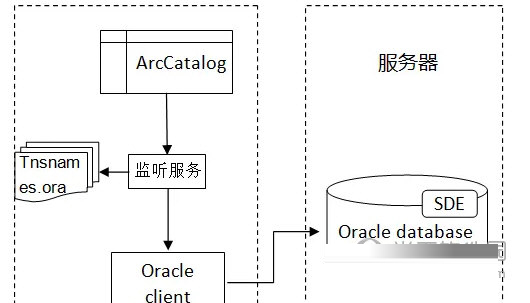 ArcSDE连接Oracle数据库有2种连接方式:直接连接和应用服务器连接,也称为:服务器端负载连接和客户端负载连接。直接连接就是通过SDE访问数据表,并在本地完成对数据的各种操作(像空间分析,编辑等),而应用服务器连接就是通过SDE访问数据表后,在服务器端完成对数据的各种操作,再把操作结果返回客户端。因此即便服务器上SDE服务没有启动,采用直接连接的方式也可以访问和操作SDE数据库,而应用服务器连接只有在SDE服务启动后才能访问和操作SDE数据库。