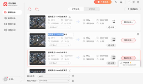 旺影速转是一款功能强大的音视频转换工具,支持音视频转换、视频压缩、视频添加水印、视频添加LUT、批量处理、多任务处理等功能。