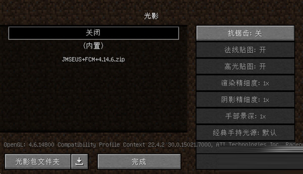 请最好使用最新版的OptiFine HD mod(光影设置需要optifine)