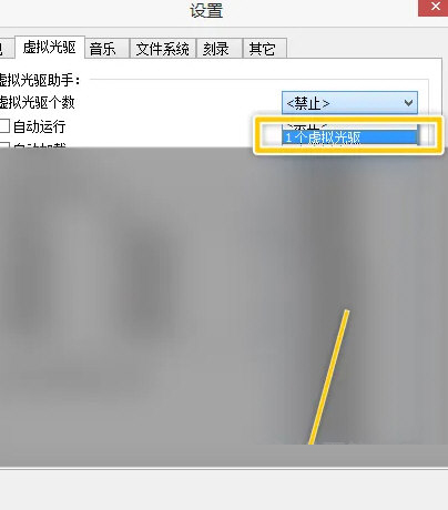 在“设置 > 虚拟光驱”界面中,点击“虚拟光驱个数”列表项。