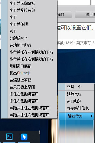 4、除了让Shimeji-ee随意做事,您还可以通过托盘图标或右键单击来手动让它做很多事情。