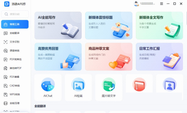 2、选择功能,打开软件后点击常用工具中的AI全能写作功能。