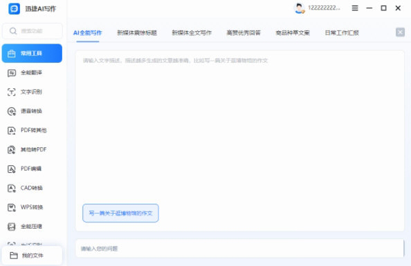 卓越的AI写作能力,迅捷AI写作软件具备先进的人工智能技术,能够快速生成高质量的文本内容。无论是文章、博客、推广文案还是产品描述,都能得到迅捷而精准的创作。
