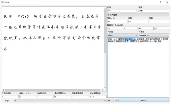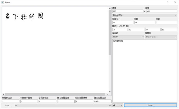 8、扰动设置:包括行间距扰动、字体大小扰动、字间距扰动、横向笔画扰动、纵向笔画扰动和旋转笔划扰动,以模拟手写字体的自然特点。