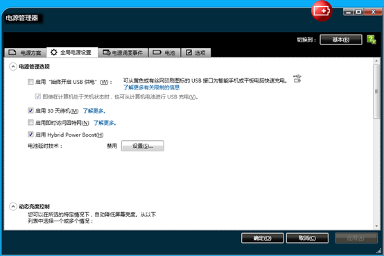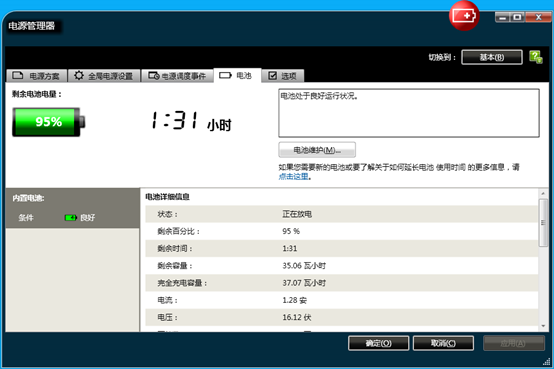 “全局电源设置”选项卡中还提供了其它电源相关设置,比如:快捷键定制,电池电量报警等。简单来看,Power Manager相当于Windows自带电源管理器的加强版。其中最实用的莫过于警报功能,特别是在移动办公环境下使用电池供电时,设置好电源电量警戒线,有于用户随时了解电池剩余电量,以免电量过少造成损失。
