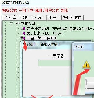 第二步:在公式管理器请输入密码界面,直接点确定按钮即可自动破解出指标密码