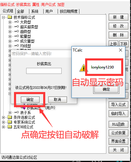 现阶段通达信各版本的公式指标加密,可以直接看到加密密码。
