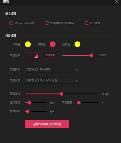 3.频谱的所有预设参数都可以调节,包括频谱的强弱,频谱的尺寸,频谱颜色等参数都可以进行DIY