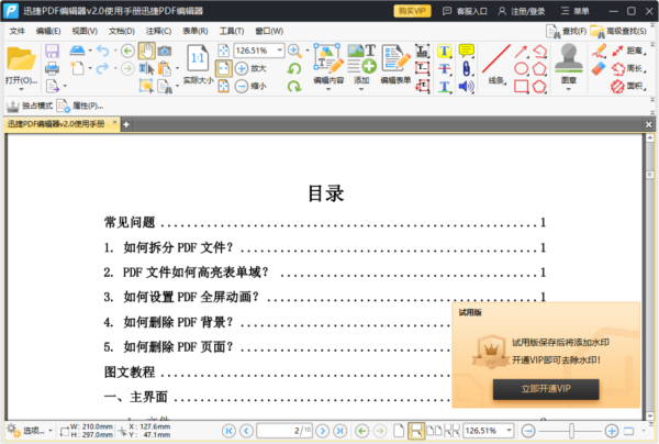 1、免费,该软件不仅可以编辑PDF文件的文本内容,图片、多媒体和其他处理。