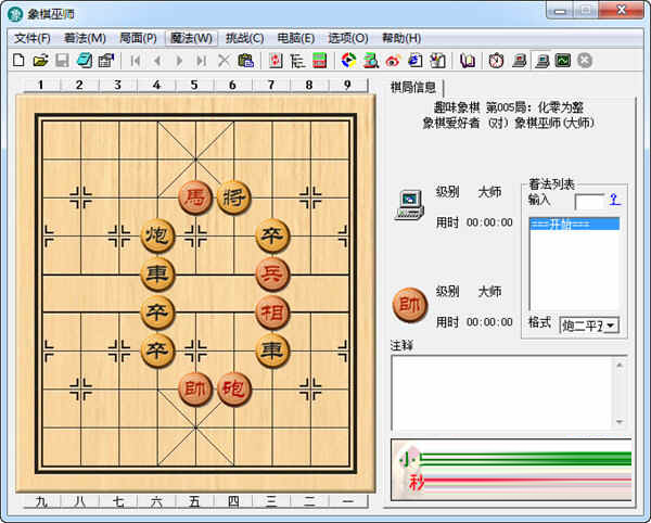 巫师可以打开象棋演播室(XQF)、弈天棋缘(MXQ)、QQ象棋(CHE)、联众象棋(CHN)、中游象棋(CCM)等多种格式的棋谱。