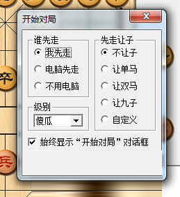 运行象棋巫师后会默认进行人机对弈模式,你可以选择电脑难度和先行方。