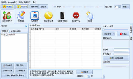 百度贴吧推广大师是一款集百度帐号注册、帐号激活、批量管理、文章伪原创、百度贴吧喜欢、升等级、批量提问、批量回答等不同功能为一体的超强推广工具。