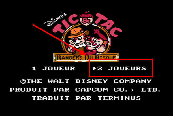 1、在FC松鼠大战1主界面点击方向键右键选中双人;