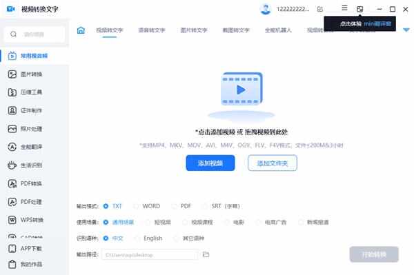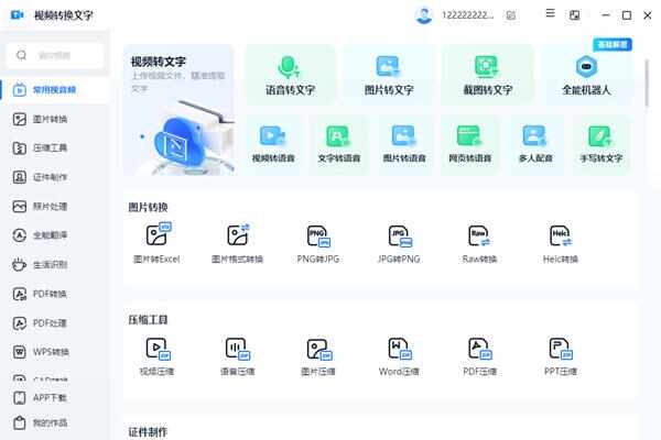 识别工具:支持视频文字提取、语音转文字、图片转文字、视频转语音等识别功能