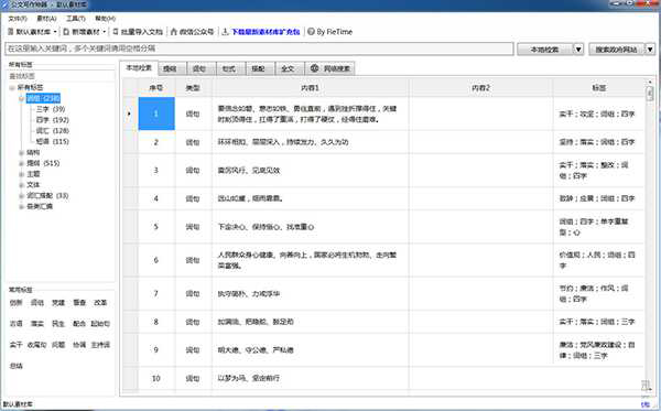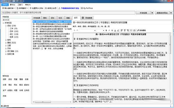 公文写作神器免安装版是一款功能强大的写作辅助软件,能够帮助用户更好的进行各种写作,有效的提高了用户的写作效率,让写作更加轻松。软件已经成功破解,去除了各种功能限制,并且去除了更新板块,用户可以永久免费使用软件的全部功能。软件功能性十足,支持跨数据库全文搜索、屏幕取字、开放上传、搜索在线资料等多种功能,可以帮助其进行文章写作辅助,提供范文、提纲、金句查询等辅助工具,能够大幅度提升写作的效率。除此之外,公文写作神器官方版提供词组、结构、提纲、主题、文体、词汇搭配等多种不同类型的标签,帮助用户整合出更理想的文章句子,同时软件还支持单个关键词及多个关键词同时输入检索,非常方便实用。