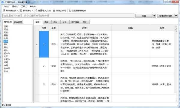 1、公文写作神器支持单个关键词及多个关键词同时输入检索。