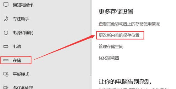 1、打开系统设置,点击存储中的更改新内容的保存位置。