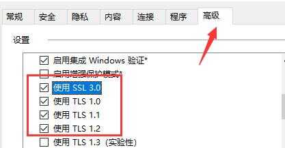 3、最后在高级中勾选使用SSL 3.0、使用 TLS 1.0、使用 TLS 1.1、使用 TLS 1.2。勾选完成后点击确定保存,重启电脑即可正常打开microsoft store了。