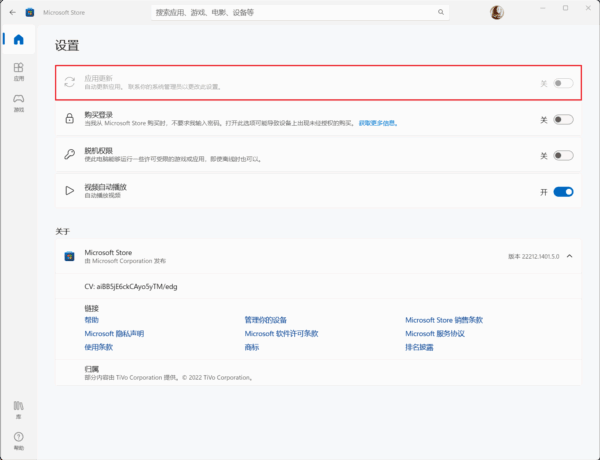 如果启用此设置,则关闭自动下载和安装应用更新。