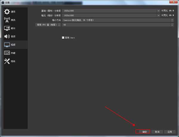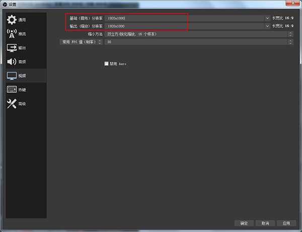 6、进入视频设置界面后,将基础分辨率和输出分辨率设置为最高(如图所示小编的电脑最高为1920×1080)