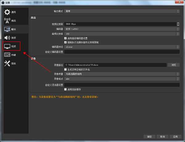 5、设置完成上面两个后,再点击界面左侧栏的【视频】按钮