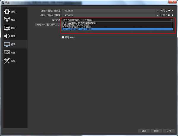 7、设置完成两个分辨率后,将【缩小方法】设置为最后一个选项(如图所示)