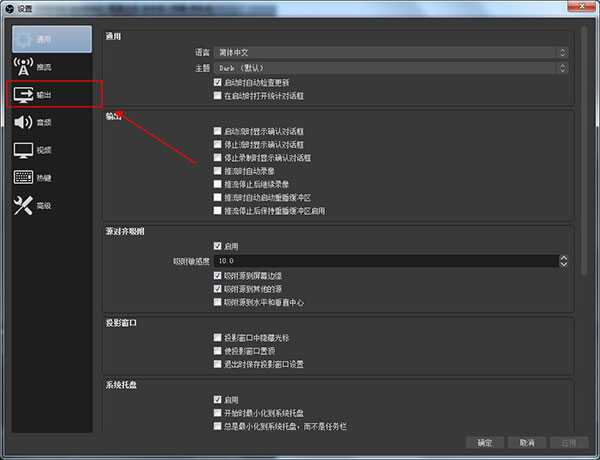 2、进入设置界面后,我们先点击该界面左侧栏的【输出】按钮