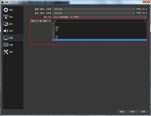 8、设置完成缩小方法后,我们再将下方的FPS值设置为【60】也就是最大值