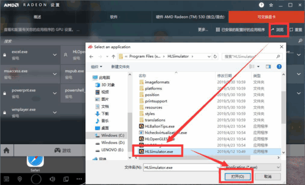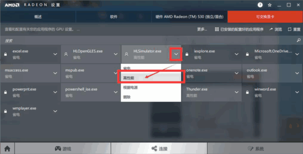 四:点击刚刚建立的HLSimulator.exe,在下拉列表中选择“高性能”即可。