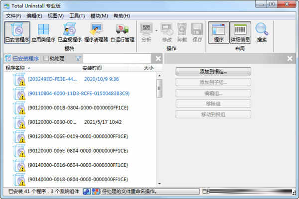 使用 total uninstall 的“已安装程序”模块可以分析已安装程序并创建安装日志。这可用于执行彻底的程序卸载,即使没有自身卸载程序的帮助。
